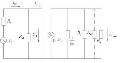 Схема замещения усилительного каскада показана на рисунке 6. В целях упрощения в схеме отсутствует проводимость g11