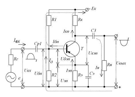 Основными элементами схемы являются источник питания , управляемый элемент - транзистор и резистор . Эти элементы образуют главную цепь усилительного каскада, в которой за счет протекания управляемого по цепи базы коллекторного тока создается усиленное переменное напряжение на выходе схемы. Остальные элементы каскада выполняют вспомогательную роль. Конденсаторы , являются разделительными. Конденсатор исключает шунтирование входной цепи каскада цепью источника входного сигнала по постоянному току, что позволяет, во-первых, исключить протекание постоянного тока через источник входного сигнала по цепи → → и, во-вторых, обеспечить независимость от внутреннего сопротивления этого источника напряжения на базе в режиме покоя. Функция конденсатора сводится к пропусканию в цепь нагрузки переменной составляющей напряжения и задержанию постоянной составляющей.