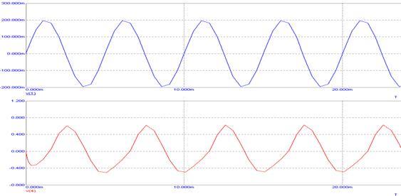 Полученные временные диаграммы для входного и выходного напряжений