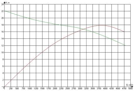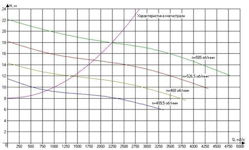 соответствующие точке пересечения характеристики магистрали и характеристики насоса для одной из скоростей.