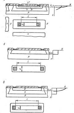 — n-переходами. Поскольку примесь в полученном диффузией резистивном слое распределена неравномерно, расчет удельного объемного сопротивления материала слоя трудоемок.
