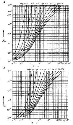 Номограммы позволяют найти усредненную удельную объемную проводимость о резистивного слоя в зависимости от поверхностной концентрации акцепторных примесей Ns