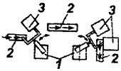 При этом с помощью ПР решаются также задачи диспетчирования работы оборудования, входящего в состав РТК, элементов транспортных систем и дополнительных механизмов. Разновидностью указанной схемы является обслуживание несколькими ПР группы станков, число которых превышает число роботов.