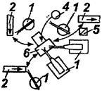 Примечание. На схемах обозначено: 1 - ПР; 2 - конвейер; 3 - основное технологическое оборудование; 4 - магазин с заготовками, деталями или инструментом; 5 - вспомогательные устройства, расширяющие функции робота (устройства контроля, измерения и т.п.); 6 - вспомогательные устройства ориентации или фиксации деталей.
