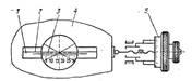 Во-вторых, перемещая стол микроскопа вращением барабана 5 проверяемого винтового механизма, последовательно совмещают деления образцовой шкалы 1 с вертикальным штрихом окуляра микроскопа для каждого деления барабана 5, следующего через 0,1 мм в пределах одного оборота барабана, и далее через 1 мм. Показания шкалы отсчетного барабана 5 должны совпадать с величиной перемещения образцовой шкалы. Например, после наведения на нулевой штрих образцовой шкалы стол; переместили до 25-миллиметрового штриха образцовой шкалы. На шкале отсчетного барабана также должна быть цифра 25. В противном случае разность этих двух отсчетов будет составлять величину погрешности винтовой пары. Допускаемая погрешность - не более 0,003 мм, т. е. одна треть интервала деления барабана 5.