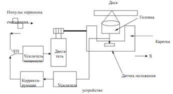 Каретка должна двигаться по направляющим таким образом, чтобы она могла свободно перемещаться только в одном направлении, причем, как правило, САРФ находится в активном состоянии. Поэтому небольшие перемещения в вертикальном направлении, вызванные радиальным движением каретки, не должны нарушать работу САРФ. В частности, например, отклонение перемещения каретки от плоскости диска не должно быть больше ±0.5°. Эти не особенно жесткие требования могут удовлетворяться несколькими системами направляющих устройств. Часто используются устройства, в которых каретка движется по двум параллельным стержням (направляющим) с подшипниками скольжения. Варианты, в которых подшипники скольжения заменены шариковыми подшипниками, имеют меньшее трение и большую точность задания движения. Это преимущество имеют также направляющие с V-образной канавкой, в которых размещаются шарики (линейный шарикоподшипник).