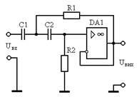В соответствии с техническим заданием и рассчитанными параметрами, в качестве схемного решения выбираем ФВЧ-ІІ Саллена-Кея, так как схема имеет небольшой диапазон номиналов элементов. Порядок всего фильтра n=2 совпадает с порядком звена Саллена-Кея, поэтому для построения фильтра необходимо одно звено.