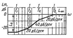 Враховуючи, що до складу системи входить пропорційна, інтегруюча, дві аперіодичні ланки першого порядку та дві форсуючі ланки отримуємо ЛАХ і ЛФХ для даної САК (рис. 17).