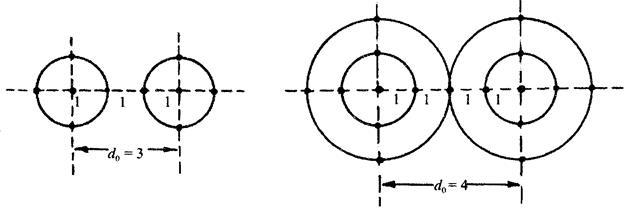 = 1), то таке викривлення в місці прийому завжди буде виявлено за структурою коду. Перехід з одного центра окружності в центр будь-якої іншої окружності (d = 2