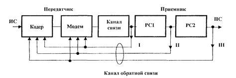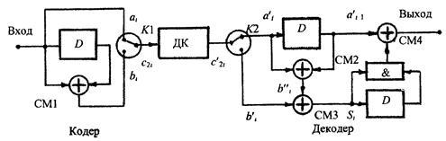 . в кодері. За допомогою введеної збитковості декодер має можливість в залежності від вибраного коду і алгоритму декодування, виявляти чи виправляти помилково прийняті інформаційні символи, які створені в результаті дії різного роду перешкод в каналі зв’язку.