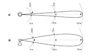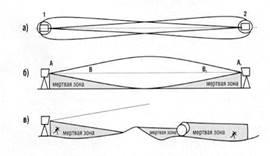 У нижній частині малюнка зображене інше ефективне розташування приймача і передавача. В цьому випадку ультразвук відображається від віднесеного на відстань твердого предмету і поступає на приймач. Сигнал, що випромінюється передавачем, повинен бути достатньо могутнім. Природно, всякий об'єкт, що встав на шляху звуку, викличе сигнал тривоги.