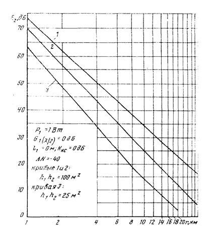 ; затем по графику (рис.2.1) или по табл. П.3.1 находится расстояние, которое и будет являться дальностью связи.