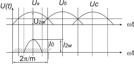 Представляет интерес взаимосвязи тока и напряжения, на выходе схемы (на нагрузке) и теми токами и напряжениями, которые действуют в схеме выпрямителя.