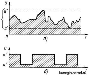 Рис. 3.1 Виды сигналов: а - аналогового, б - дискретного