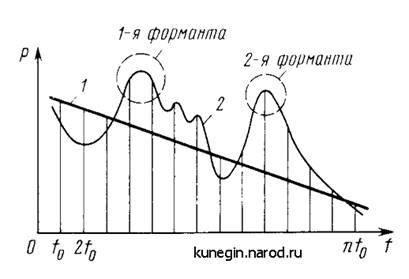на Рис. 3.3) лежит в пределах от 50..80 Гц (бас) до 200..250 Гц (женский и детский голоса). Импульсы основного тона содержат большое число гармоник (до 40) (2f0