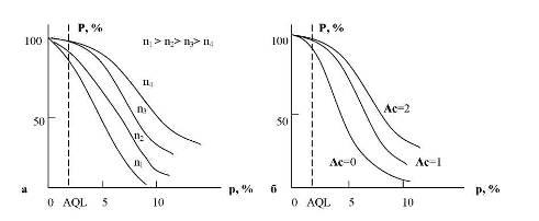 Уровни контроля отличаются друг от друга объемом выборки n и требованиями к контролю, что выражается крутизной оперативной характеристики.