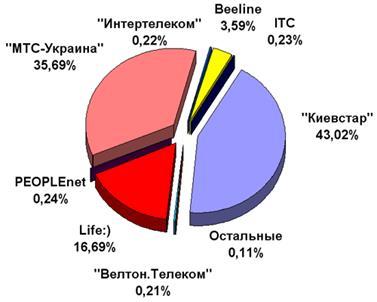 1. Автором роботи встановлено, що ринок послуг зв'язку знаходиться в стадії розвитку. Оператори з недержавною формою власності займають незначну частку ринку, оскільки невеликий обсяг реалізації послуг та інші виробничо-технічні фактори не дають можливості цим операторам достойно конкурувати з державними операторами. На ринку послуг звязку України на сьогодні домінують оператори ВАТ "Укртелеком" та УДППЗ "Укрпошта".