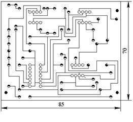 Чертим печатную плату с учетом выше перечисленным требований сначала на миллиметровой бумаге. Ширина соединительных дорожек должна быть примерно мм, расстояние между дорожками не менее мм, диаметр соединительных площадок мм.