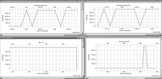 На рисунке 10 представлены входной и выходной сигналы кодера, а также исправляющая комбинация к.