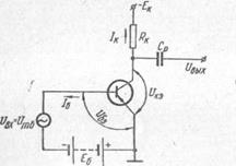 На рис. 11 показана схема простейшего усилителя на транзисторе типа р-п-р. В коллекторной цепи транзистора имеется источник питания , сопротивление нагрузки и разделительный конденсатор .