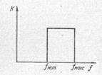 Полоса пропускаемыхчастот (полоса пропускания) — диапазон частот, в пределах которого усилитель при неизменной настройке обеспечивает заданную величину коэффициента усиления . На рис. 1 приведена идеальная частотная характеристика усилителя. Она имеет форму прямоугольника с основанием, равным полосе пропускания. Вследствие того, что в усилителе есть реактивные сопротивления, частотная характеристика оказывается неравномерной и при проектировании усилителя необходимо обеспечить минимальное изменение величины в пределах заданной полосы пропускания.