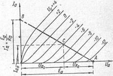 Динамическую анодную, или нагрузочную, характеристику усилительной лампы строят следующим образом. На осях координат семейства статическиханодных характеристик обозначаются две точки А и В (рис. 8). Точка А соответствует анодному напряжению при ; точка В — анодному току при