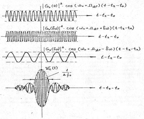 . Действительно, после поступления сигнала на вход максимум отклика может быть достигнут за счет энергии всего сигнала только в конце его длительности. Сигнал на выходе оптимального фильтра оказывается сжатым во времени. Его длительность обратно пропорциональна ширине спектра сигнала ∆τ = 1/∆f0