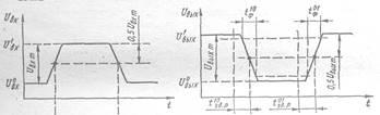К динамическим параметрам, характеризующим свойства микросхемы в режиме переключения, относятся: время задержки сигнала при включении - интервал времени между входными и выходными импульсами при переходе Uвых ИЛЭ от U1вых до U0вых, измеренный либо на уровне 0,5 амплитуды импульса, либо на уровне порога чувствительности; время задержки сигнала при выключении- интервал времени между входным и выходным импульсами при переходе Uвых ИЛЭ от U0вых до U1вых, измеренный либо на уровне 0,5 амплитуды импульса, либо на уровне порога чувствительности; среднее время задержки.