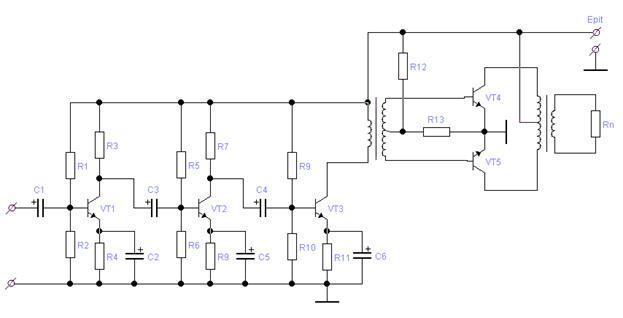 Включение нагрузки непосредственно в выходную цепь усилительных элементов без выходного трансформатора позволяет устранить вносимые последним частотные, фазовые и нелинейные искажения, уменьшить размеры, вес, объем и стоимость каскада, повысить его кпд и избавиться от нелинейных искажений, вызываемых отсечкой тока в режиме В.