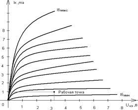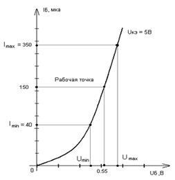 Нахождение тока базы по выходным характеристикам (рис. 2):