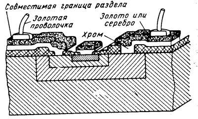 Фирма Philco сообщила о применении системы хром-серебро, фирма Texas Instruments использует тонкий слой алюминия для улучшения адгезии, затем слой молибдена для защиты поверхности раздела и для изоляции алюминия и слой золота, которое наносится на поверхность для улучшения прикрепления проволочных выводов к контактным площадкам.