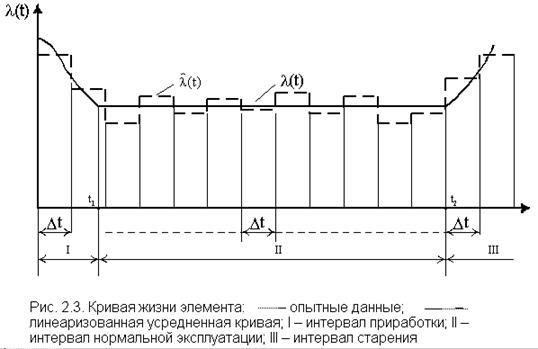 Как показывают многочисленные данные анализа надежности большинства объектов техники, в том числе и электроустановок, линеаризованная обобщенная зависимость (t) представляет собой сложную кривую с тремя характерными интервалами (I, II, III). На интервале II (t2 -