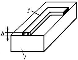 Рис 7. Оптический полосковый микроволновод с прямоугольным поперечным сечением: 1 – подложка; 2 – диэлектрическая пленка.