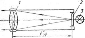 1 – объектив; 2 – сетка или мира;3 – источник света