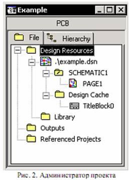 Всі ресурси будь-якого проекту OrCAD Capture знаходяться в Адміністраторові проекту (рис.2).