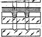 2. Нанесение сеток прорезыванием защитного слоя, покрывающего поверхность стекла (рис.8) и последующим травлением кислотой обнаженного стекла до получения рельефных штрихов позволяет получать сетки с шириной штрихов в пределах 0,010-0,002 мм.