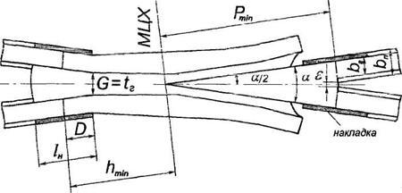 За конструктивних причин кут не може бути меншим ніж 18'. Якщо одержано меншим ніж 18', то приймають , рівним 18' ...20'.