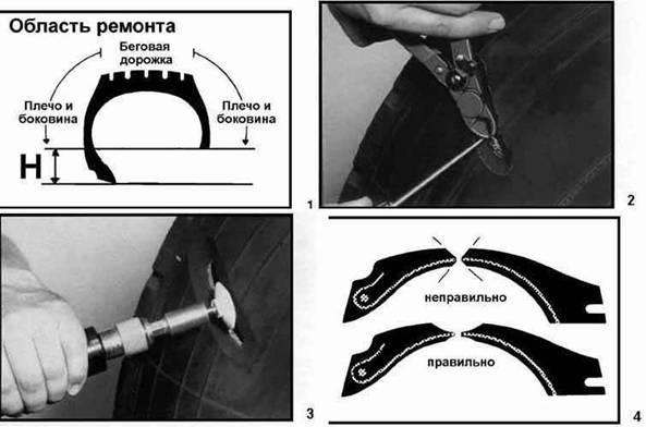 Для шин установлены два вида ремонта: местный, при котором устраняют местные повреждения, и восстановительный, предусматривающий наложение нового протектора.