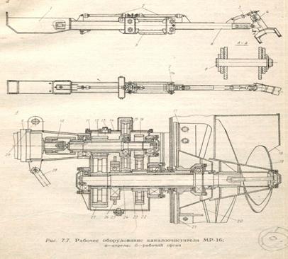 предназначен для очистки дна канала от наносов и растительности и выброса продуктов очистки за бровку канала. Основные составные части рабочего органа: гидромотор 9,