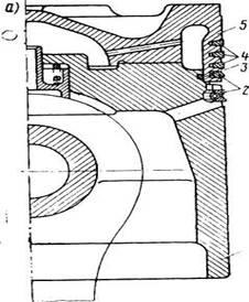 С первых номеров дизелей типа Д49 до 1981г. Использовались компрессионные кольца с двухсторонней трапецией. Необходимость в таких кольцах вызывалась применением головок поршней без масляного охлаждения. При переходе на масляное охлаждение поршней следовало перейти на кольца прямоугольного сечения. Однако завод перешел на кольца с односторонней трапецией, что сохранило их недостатки и вызвало увеличение зазора в замке из-за износа боковой поверхности.