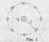 Нехай у якийсь момент часу заряд рівномірно оточений зарядами (мал.1). Якщо навколишні заряди відсутні, то поле заряду q не екранується і розподіляється за законом