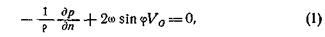 Тогда в случае равномерного движения должны уравновешиваться уже три силы, действующие на воздух, — градиента, отклоняющая и центробежная.