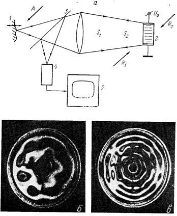 [13, 14] (а) іголографічнаінтерферограммадифузора, щоколиваєтьсянарізнихчастотах (б, в).