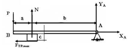 На механическую систему действуют внешние силы: - сила сухого трения в опоре А; - силы тяжести тел 1, 2 и 3; -сила нормальной реакции в точке А; -реактивный момент в опоре В.
