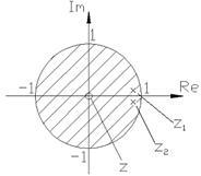 Т. к. полюса (корни характеристического уравнения) лежат внутри окружности, то ЦФ устойчив. Но как видно из рисунка устойчивость его мала, он находится почти на грани устойчивости. Чем ближе значения полюсов к центру окружности, тем устойчивее ЦФ.