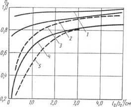 Так как к. п. д. электроконтактных установок находится в зависимости от длины заготовок при одном и том же диаметре, то на фигуре приведены кривые для l2
