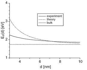 Для масивного зразка значення енергетичної щілини . Теоретична крива отримана з використанням рівняння (1.8) з наступними параметрами: ефективна маса електронів/дірок , , m0