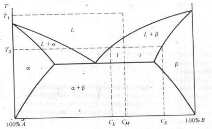 одновременно существуют фазы L и . Состав присутствующей фазы L есть CМ