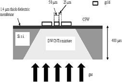 В [18] в якості детектора азоту показано можливість використання вуглецевих нанотрубок. Вуглецеві нанотрубки покривають тонку діелектричну мембрану (Рис. 39). Принцип дії даного детектора базується на зміні прозорості -S21