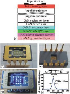 Рис.32. Схематичний переріз та фотографія детектору озону з ультрафіолетовим активаторним GaInN